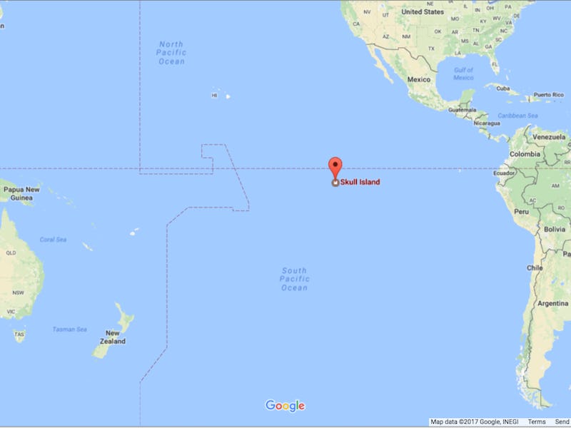 Check it out: Google places Skull Island just south of the equator, 3,000 miles west of the Pacific coast of South America. That plants the spot well within in the Pacific Plate — Earth’s largest tectonic plate — in an area of noted seismic and volcanic inactivity. How an island might crop up on such a stable and earthquake-free piece of seafloor is a mystery that neither Google nor Monarch (the fictional organization behind the discovery of the island) has answered.