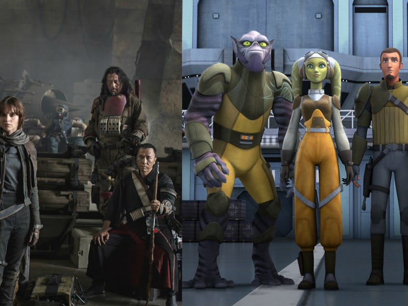 Rogue One: A Star Wars Story gave a nice nod to Rebels by referencing Hera Syndulla over the Yavin base’s intercom. Rebellion leader Mon Mothma, extremist Saw Gerrera, Gold Leader, and pilot Wedge Antilles have all shown up in animated form on Rebels. Maul has been a persistent threat throughout the series. And an older Obi-Wan Kenobi will be making an appearance by the end of the season.
