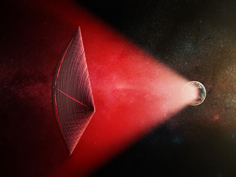“We are trying to push a very lightweight spacecraft that weighs a gram or so,” Loeb tells Inverse. “A much more advanced civilization might very well develop a technology that can launch much heavier payloads. It’s the same principle. You attach the payload to the sail and you push the sail with light.”