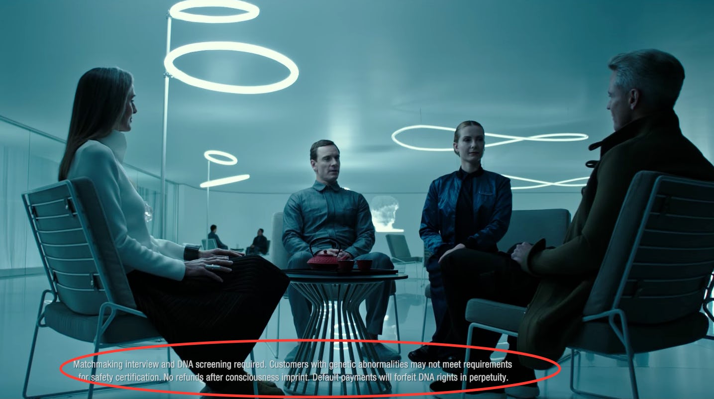 The fine print goes like this: “Matchmaking interview and DNA screening required. Customers with genetic abnormalities may not meet requirements for safety certification. No refunds after consciousness imprint. Default payments will forfeit DNA rights in perpetuity.”