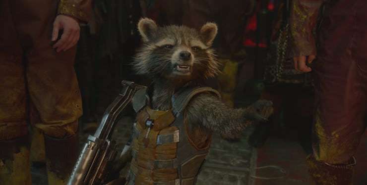 Rocket — being, well, himself — immediately threatens Quill with planting a “turd” in his pillowcase that night.