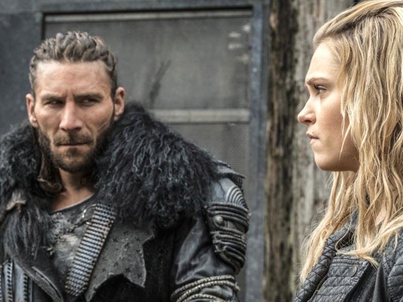 The ensuing scene is a relatively straightforward action sequence without complication, but it’s a hell of a lot of fun to watch. Roan leaps from one car to another in gloriously dramatic slow motion and proceeds to beat the shit out of the Trikru man who kidnaped Clarke. It’s one of the best Roan episodes to date. Behind the wheel, Bellamy steers his car to cut Clarke’s off and shoot the Trikru member forcing her to drive. And Clarke manages to wrestle control of her car just in time to dramatically stop in front of Bellamy and exchange a patented Clarke and Bellamy “we did it!” look.