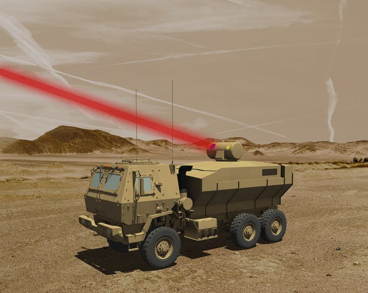 It’s no secret why the military is starting to put some real urgency behind the initiative: drone proliferation. With small and even mid-sized aerial robots now finding their way into the hands of small states and non-state actors, it’s important to have a weapons that could quickly take down a sturdy flier, or even sweep deadly heat across a group of flimsy quadcopters, like Raytheon’s microwave emitting drone-killer. A single Humvee sporting an efficient, computer-guided laser weapon might provide drone defense for an entire convoy — according to one 2015 report from The Center for New American Democracy, so-called directed energy weapons could provide an “important, if dynamic, quantitative military edge.”
