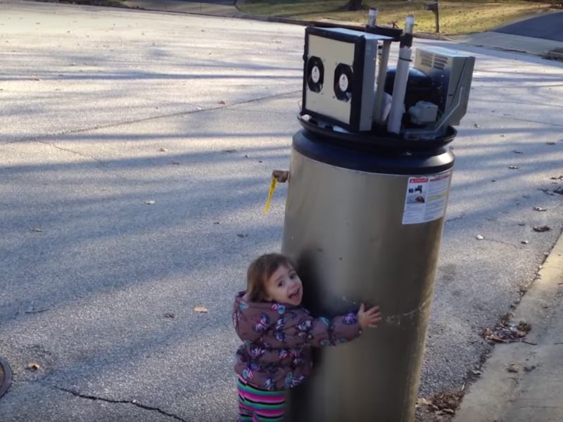 The water heater is perfect because it looks like a nice, friendly cartoon robot with a huggable body, square head, and large eyes. Ideally, it would also have arms, says Knepper. And robots in cartoons are friendly and talkative, which is probably why Rayna met the robot as warmly as she did. “If I were to build a robot to interact with children I might use something like a water heater as a model,” he says.