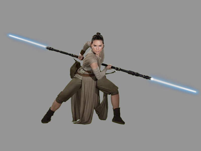 Since Rey was first depicted brandishing a staff as a weapon in Star Wars: The Force Awakens, fans have been clamoring for her to become the first double-bladed lightsaber-wielding Jedi we see in the movies. We know that Rey will wield the blue Skywalker lightsaber in The Last Jedi, but what might happen in Episode IX?