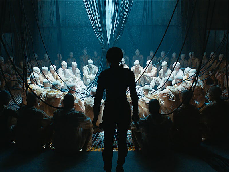 About 40 minutes into Ghost in the Shell, the tough-as-titanium Major Mira Killian (Scarlett Johansson) hangs high in the air with plugs forced in her neck. Her eyes droop as she’s forced to listen to her target — a criminal known as “Kuze” (Michael Pitt). Shrouded in a raggedy cloak, Kuze says he’s an earlier model from Hanka Robotics who was replaced by the superior and less temperamental Mira. This is what screenwriters Jamie Moss, William Wheeler, and Ehren Krueger took from Masamune Shirow’s original manga: that the real horror in artificial intelligence is that older models will one day realize they’re being replaced.