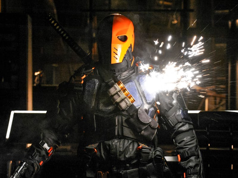 It’s been awhile since the Arrowverse has seen Slade Wilson. But in a tweet from Arrow star Stephen Amell, the fearsome killer known as Deathstroke is confirmed to return in “Lian Yu,” the Season 5 finale of Arrow which will premiere May 24 on tTe CW.