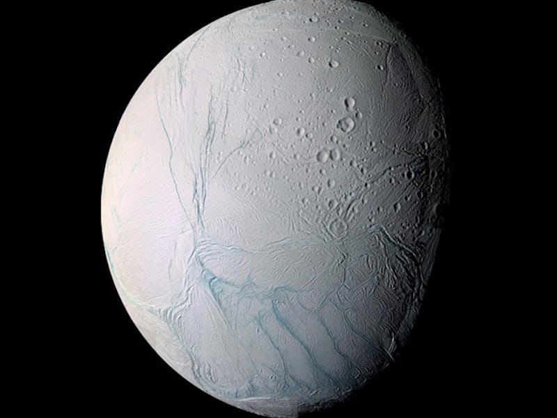 The icy moon Enceladus, pronounced EN-SELL-AH-DUS, has quickly risen to potential habitable status thanks to the Cassini spacecraft, which first discovered large icy plumes spouting from its surface.