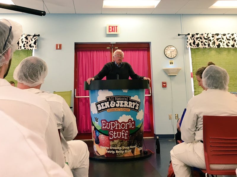 The Vermont senator was speaking at the Ben and Jerry's factory.