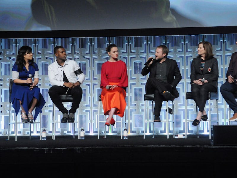 ORLANDO, FL - APRIL 14: Kelly Marie Tran, John Boyega, and Daisy Ridley attend the Star Wars Celebration Day 02 on April 14, 2017 in Orlando, Florida. (Photo by Gustavo Caballero/Getty Images)