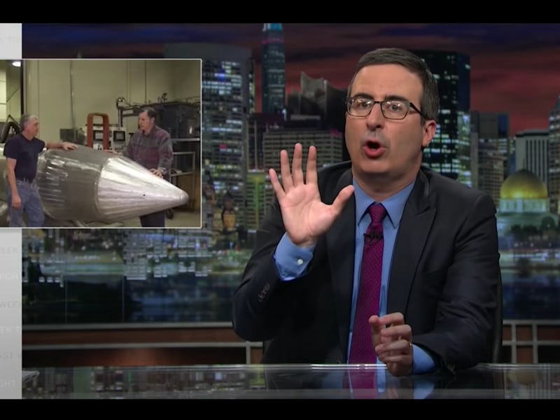John Oliver is worried. This week, the United States dropped a 21,600-pound bomb on Afghanistan. It was the first time the bomb, dubbed the “mother of all bombs,” had been used in a combat situation, and on an episode of Last Week Tonight that aired Sunday, Oliver scrutinized the media coverage around the bombing and the commentary aired in its wake.