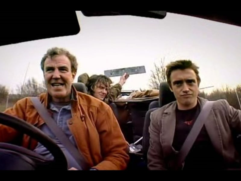 The reason a Netflix tune up makes so much sense isn't just that the streaming site has a notoriously hands-off approach to talent or that it likes to throw money around. The reason is structural. Top Gear is a show that can be watched and re-watched out of order. Richard Hammond and Clarkson's bonhomie is best savored in a horizontal position. And — as many of the show's loyalists will tell you — marijuana helps. It is, in essence, a car show about three men who love each other, a version of the office with more horsepower and a heterosocial Jim-Pam relationship. (This should go without saying, but Hammond is Pam. May has Ellie Kemper's haircut.)
