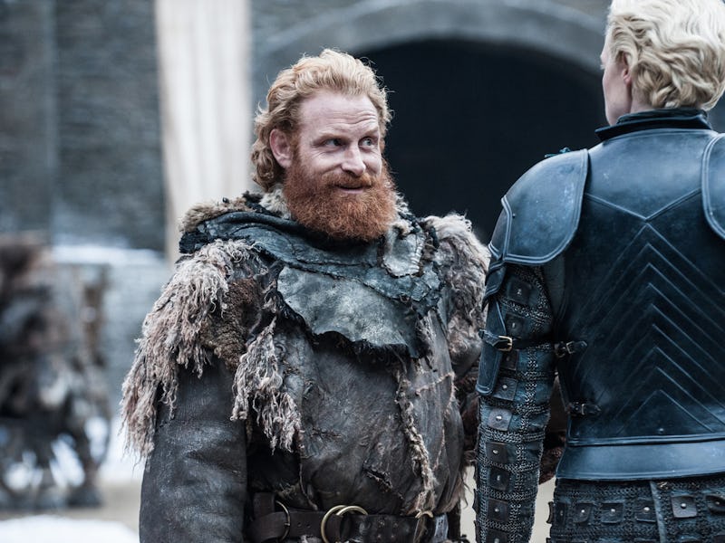 Tormund Giantsbane has had heart eyes for Brienne of Tarth since he first spotted her atop a horse at Castle Black. Newly released photos from the set of Game of Thrones Season 7 confirm that Tormund (Kristofer Hivju) will, indeed, continue his love-struck behavior and attempt to woo the business-minded Brienne (Gwendoline Christie) once and for all.