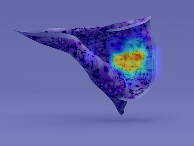 The product closest to market is a scarf that makes use of HyperFace technology. Hyphen-Labs collaborated with HyperFace’s designer, Adam Harvey, to bring the deceptively high-tech concept to market. While seemingly a simple silk scarf, it’s covered in a carefully plotted design that throws off facial recognition scanning devices, thus creating a nondescript shield against surveillance: