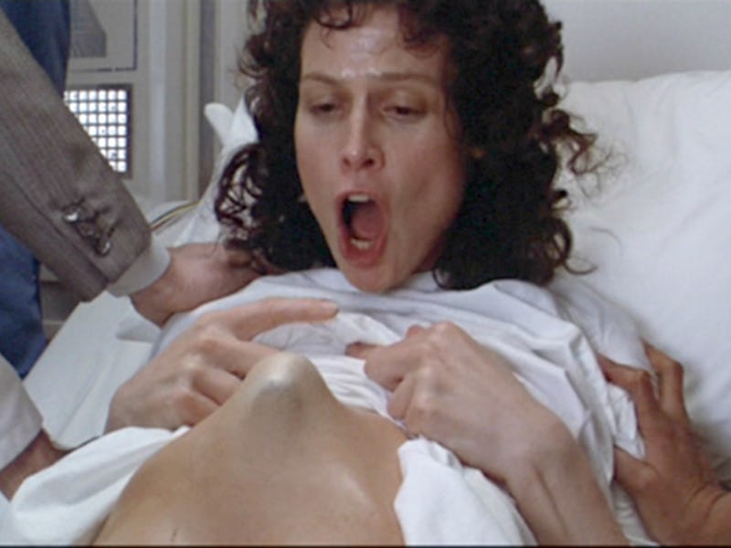 The screaming, which is panicked, hysterical, and only from women, harkens back to Sigourney Weaver’s in-utero chest-burster in Aliens and Noomi Rapace’s self-inflicted, machine-performed C-section in Prometheus. It’s a little gag-inducing in, maybe, not the best way.