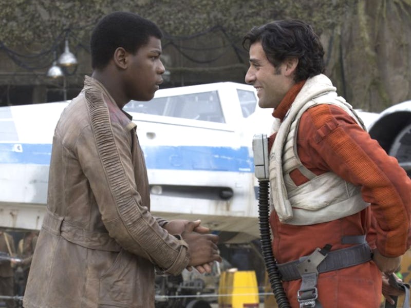This isn’t to say that John Boyega is making Finn/Poe canon by giving a thumbs-up, but it seems like at least a veiled acknowledgment? In fan fiction circles, the pairing of Finn and Poe is called “stormpilot” which refers to Finn being a stormtrooper and Poe being a pilot. Fans on one “stormpilot” Tumblr have already noticed the thumbs-up.