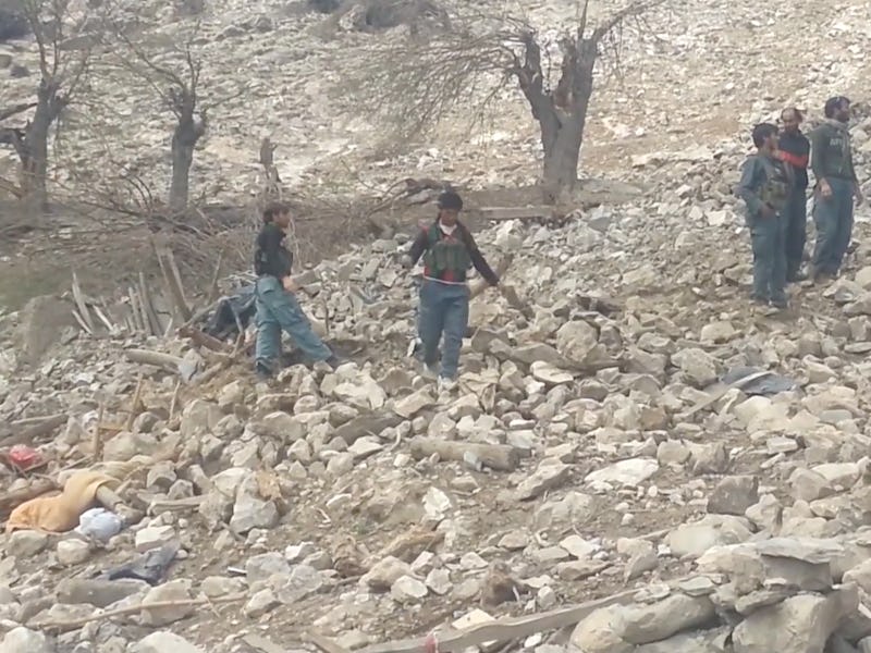 The footage shows Afghan police climbing over rubble and picking through demolished buildings in an area that appears to match satellite imagery of the strike. Several gunshots are audible on the video, suggesting that fighting is still underway in the area. U.S. officials for the Resolute Support mission in Afghanistan did not immediately respond to requests for comment, but we’ll update this story if we hear back.