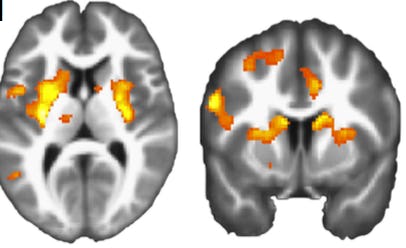 Turns out that people don’t feel too great about paying to hurt others and that this can be seen in the brain. “Most participants displayed moral preferences, placing a higher cost on harming others than themselves,” the researchers write. They found that in the subjects who did decide to shock a stranger in order to earn money, the area of the brain associated with reward and decision-making, the dorsal striatum, was less active than it was when the subjects shocked themselves instead. This regulation seemed to be modulated by the lateral prefrontal cortex, the area of the brain associated with thoughtful action.