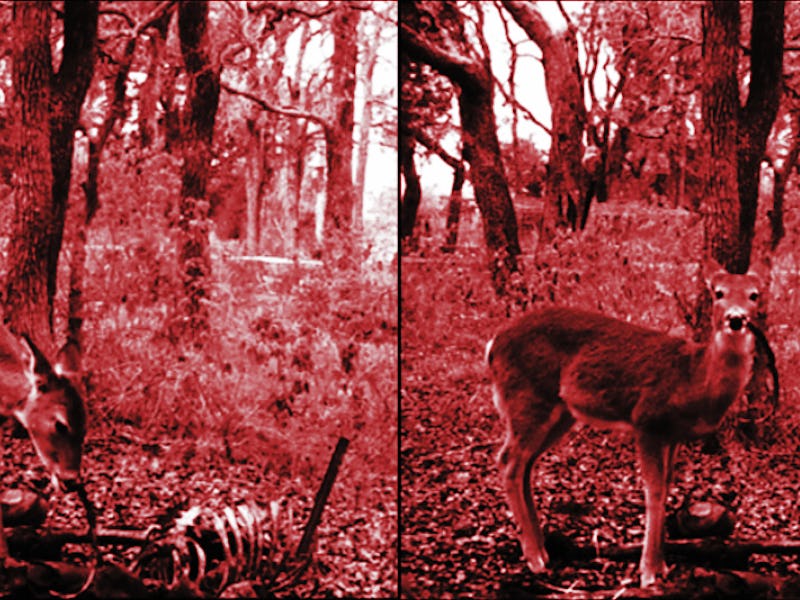 The photos of this deer (or possibly deer, plural — the researchers aren’t sure) were snapped in January 2015 in the 26-acre Texas forest where the forensic scientists do their work. Their research largely involves taking human corpses and throwing them into the wild, which allows them to observe things like decomposition rate, the effects of exposure to weather, and, yes, the marks that carnivorous scavengers leave behind. Usually, the latter comprise the usual flesh-eating suspects — vultures, raccoons, coyotes, and the like — and not usually deer.