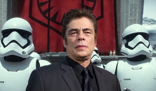 Other rumors suggest that del Toro’s character will be some sort of mole within the First Order. Making Star Wars speculates that del Toro’s character, named or codenamed “D.J.,” resides on the casino planet of Canto Bight and will assist Finn and Rose in a secret mission.