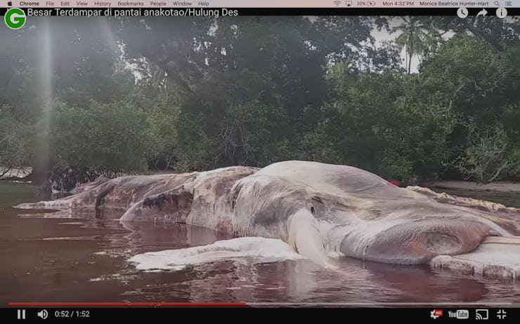 Last week an enormous, rotten carcass washed up on the shore of Indonesia’s Maluku islands, so far along in the stages of decomposition that nobody could figure out what kind of animal it was. At 50 feet long and with giant tusk-like bones, it looked like some sort of hellish sea monster.