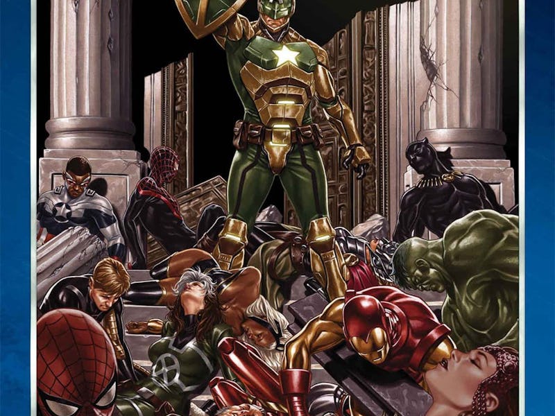 Marvel also shared the cover for the final issue, which shows a fully Hydra-suited Captain America standing over all his fallen former friends. The shield in the series’s title, which has been a mishmash of the classic star and the Hydra logo, is censored. Perhaps it’s a spoiler, but it sure looks like HydraCap is doing pretty well for himself going into the finale.