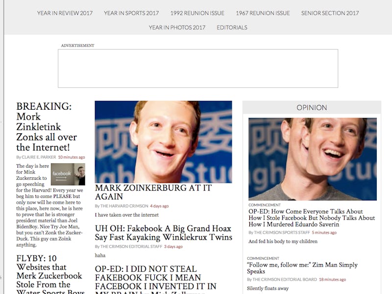 The Harvard Crimson Website is Flooded with Mark Zuckerberg Trolling