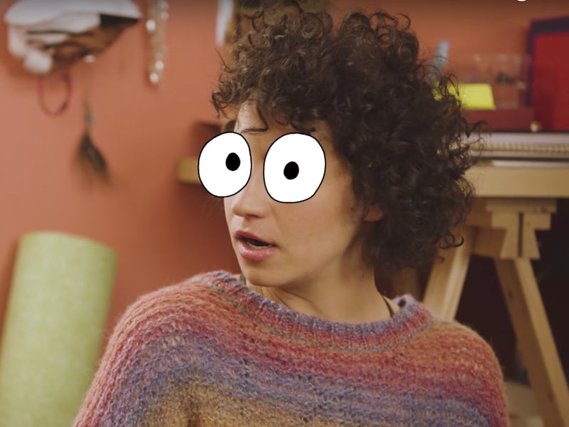 We don’t get too much of a sense of “plot,” though that’s not really the point. What we can glean is that even though Ilana and Lincoln aren’t together anymore, Hannibal Buress is still on the show, and they seem friendly. In one scene, an orange-wigged Ilana makes eyes at Lincoln from across a party, so maybe they’ll be back together. Meanwhile, Abbi is still hooking up with Trey, so, that’s happening.