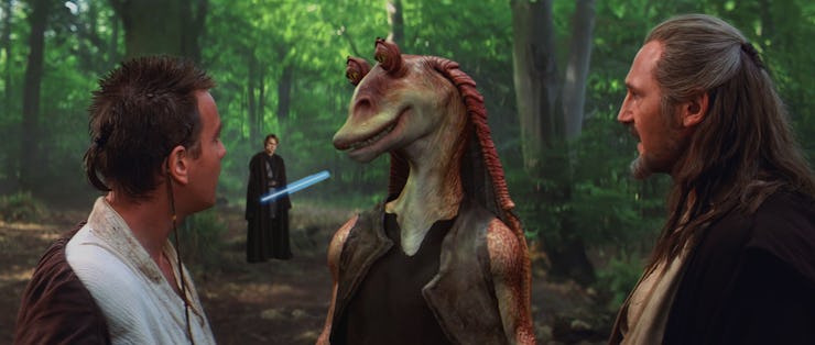 The video in question (below), “Top 10 Reasons Why the Star Wars Prequels are Hated,” riffs on what’s assumed to be the Star Wars fandom’s general hatred for Lucas’s prequel trilogy. The first of the prequels, 1999’s Star Wars: The Phantom Menace, introduced the world to easily unlikeable characters, such as Jar Jar Binks (“Ye gods, whattsa meesa sayin’?”), and a frankly unbelievable plot where a 16-year-old Queen Padmé Amidala is more interested in 10-year-old Anakin Skywalker than his ‘90s-tastic future mentor Obi-Wan Kenobi. But that doesn’t mean fans aren’t willing to protect the movies from haters.