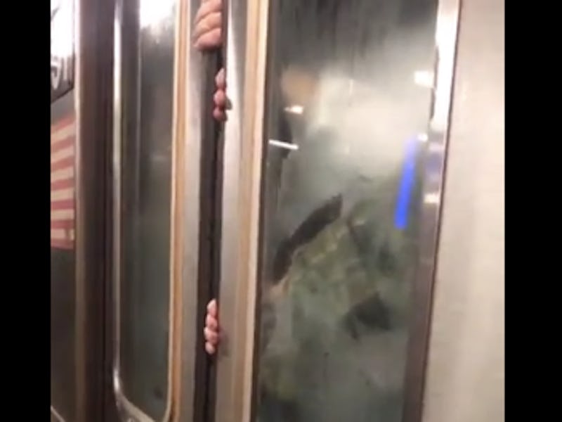 The horrific cage of hell was a southbound F train — the NYC line that runs from Queens, through lower Manhattan, and into southwest Brooklyn — that stopped somewhere before the Broadway-Lafayette Street station at 6:57 p.m., right at the tail end of rush hour. Chelsea Lawrence, a commuter outside the train, captured a shocking video of multiple passengers’ cramming their fingers through the train’s pneumatic doors, attempting to force them open and let them out at the station, while begging to be let out.