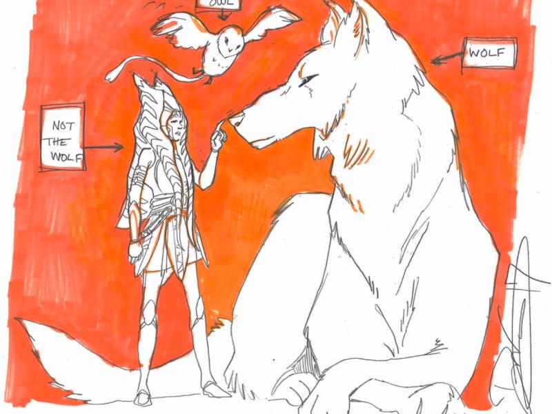 The lupine fuss all started when fans came up with the cockamamie idea that Anakin Skywalker’s former padawan Ahsoka had somehow transcended her form and become the giant white wolf who pops up in the trailer for the final season of Rebels. SlashFilm has a pretty good rundown of what made this theory even remotely plausible, but it mostly boils down to Filoni liking wolves, some concept art with a wolf motif, and the vagueness of Sith magic.