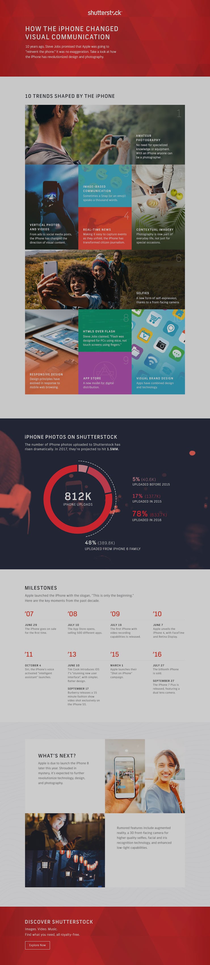 A new infographic from Shutterstock details how the iPhone has changed the way people think about and take photos. The company expects that the number of iPhone photos uploaded to its royalty-free image site will rise to 1.5 million over the course of this year, up from the current figure of 812,000. This is thanks to the combination of hardware and software aimed at improving the phone’s picture-taking capabilities.