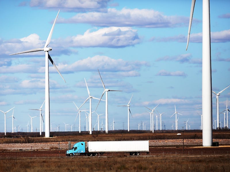 Wind turbines are viewed at a wind farm on January 21, 2016 in Colorado City, Texas.