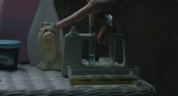 In episode eight, “Maybe It’s All the Disco,” Wilder (played by Alison Brie), holes up in the bathroom after she realizes she’s missed her period. The “Easy to read color result Advance pregnancy test” she attempts to use is practically a high school chemistry kit: it includes a clear plastic tray, two test tubes, a test tube holder, an eye dropper, and a white plastic stir-stick. Wilder pees in the tray — and all over herself — and mixes her urine with two clear liquids. She stirs the solution with the white plastic stick. And then she waits for a painfully long time.