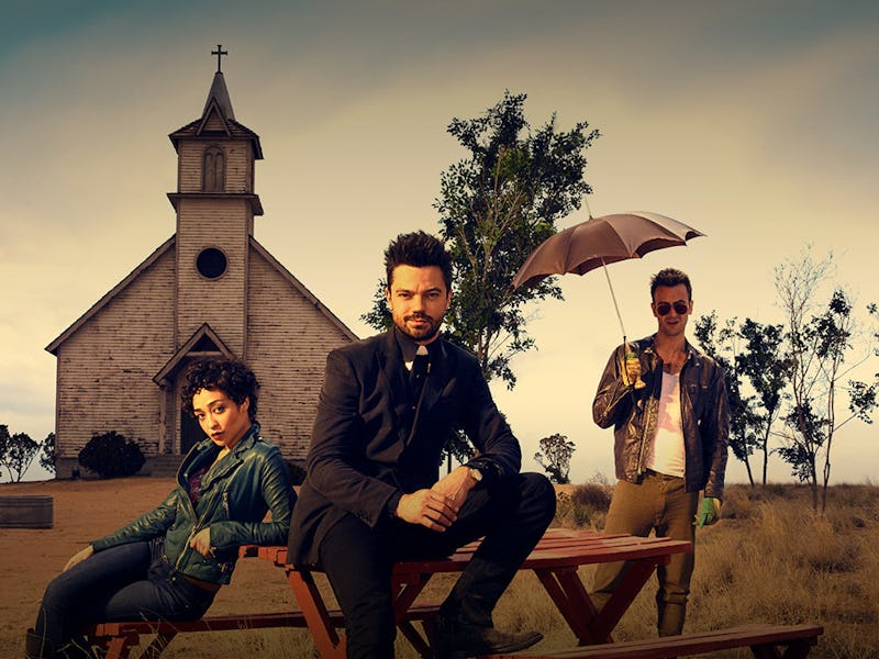 Season 2 of Preacher premiered on Sunday, putting a real start to Jesse, Tulip, and Cassidy’s mission to find God and figure out what’s going on in the world. One character is in hell, a lot of people are dead, and the fate of Genesis is up in the air, even as the angels and a hell-dwelling cowboy are coming after it. Yes, it’s a lot, but it’s also delightful. And, somehow, still less confusing than Supernatural’s recent stream-of-consciousness plots.