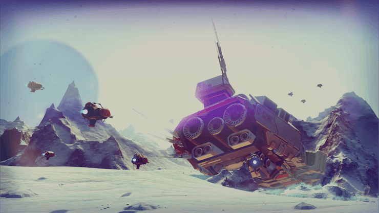 When we commune with alien visitors, the more relevant point of comparison will be outer space itself. Astronomers’ best guess is that the universe contains something on the order of 7x10^22 stars. No Man’s Sky isn’t really all that close, but it’s in the ballpark, with 1.8x10^19 planets. More to the point, it is all about exploring those worlds, shuffling from planet to planet, skating through asteroid fields, checking out made-up animals on acid-trip landscapes. If extraterrestrial visitors have any similarities to humans whatsoever — if they’re not spores, or energy-based, or four-dimensional, or unable to process our visible light spectrum, or not big fans of indie games’ feel generally — then they should intuit what this is all about. They will make up consonant-dense user handles and claim algorithmically generated worlds for their own, claiming new ships and exploring bizarre atmospheres and topographies. They’ll grok. Then we’ll show them differential calculus and our paltry list of known prime numbers and they’ll politely laugh their asses off at us, as friends can do and still be totally cool about it.