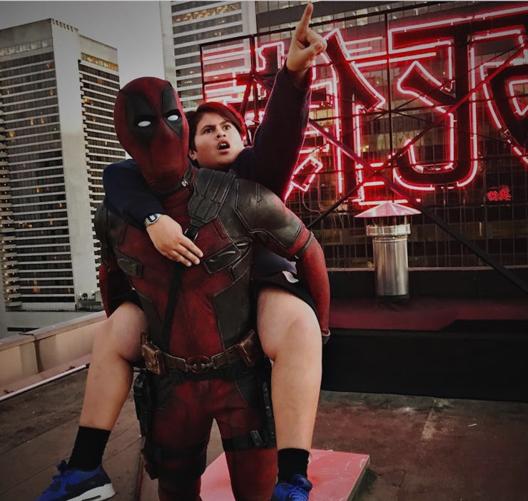 “Giving Julian Dennison a warm 💀💩L welcome as we stare off into our beautiful future together,” Reynolds wrote, cheekily using the skull and poop emojis along with the letter “L” to represent Deadpool’s name. The accompanying photograph shows Reynolds, in costume, giving Dennison a piggyback ride. He’s pointing off in the distance and making a great face. There’s a neon sign behind them with illuminated Japanese characters on it, suggesting that Deadpool 2 might have something to do with the land of the rising sun.
