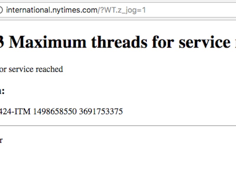 Right now, nytimes.com currently displays an “Error 503: Maximum threads for service reached,” one of the common error prompts when a DDoS attack takes down a site. At some point on Wednesday morning, a similar error showed on Reddit, Kickstarter, Github, The Guardian, and other sites.