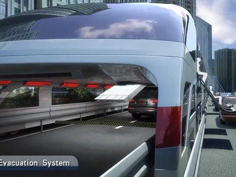 For decades, Hodgetts’s Landliner concept sat entirely dormant. In the summer of 2010, however, Chinese developers first proposed the idea of building and testing a real car-eating bus. The developers cited the growth of China’s major cities — and the growing traffic. By allowing a high-capacity bus to skate over cars, they hoped, quite simply, to move more people faster.