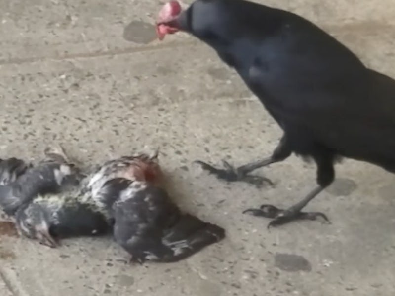 While it’s easy to label the crow a demonic cannibal-murderer, crow expert Kaeli Swift, a University of Washington Ph.D. candidate studying corvid thanatology — crow death — tells Inverse not to be so hasty. While the situation certainly casts the crow in a homicidal light, she points out, we don’t actually know what the pigeon’s deal was before the crow got to it. She suggests the crow might in fact be innocent, because the pigeon was already dead.