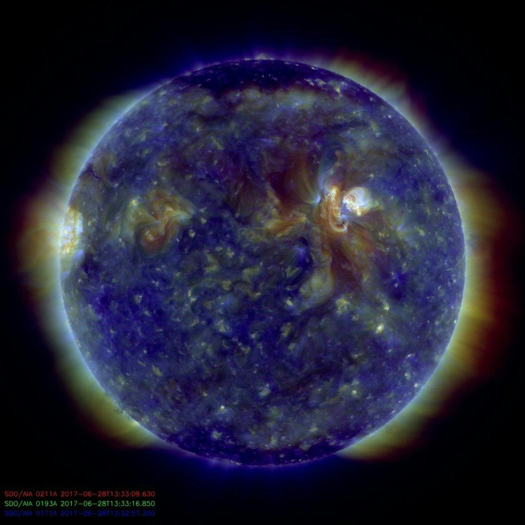 July 2017 image of the sun seen through the combination of certain light wavelengths.