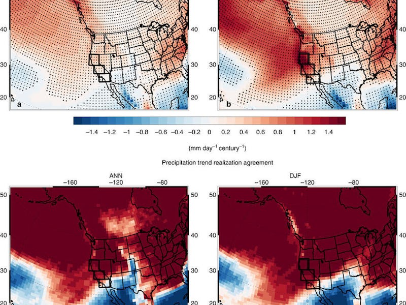 As the recent California drought showed, climate change has the terrifying ability to turn farmland into dustbowls and forests into kindling. But new research has come to the surprising conclusion that climate change will make most of California a whole lot wetter by the end of this century, suggesting that the cause of the state’s drought woes may also be the cure.