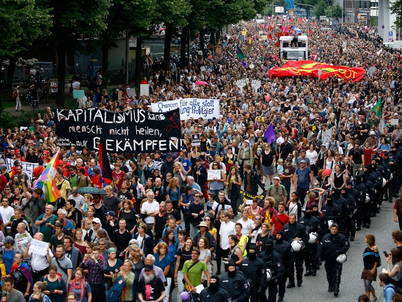 Images on social media and news coverage showed huge amounts of people taking to the streets, some peacefully, and of course others not so much. The Washington Post reports that 1,500 protestors rioted on Friday night while nearby world leaders attended a concert in the city’s towering glass concert hall the Elbphilharmonie.