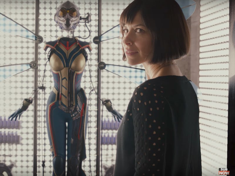 While this is indeed a glimpse at the Wasp in the next Ant-Man movie, it isn’t the first time that a Wasp has appeared in the MCU. In the first Ant-Man, Janet Van Dyne — aka the Wasp — appeared in a flashback, where Janet went “subatomic” during a mission and was lost in a different dimension. In the film’s post-credits scene, Hank Pym (Michael Douglas), Janet’s husband and the original Ant-Man, shows his daughter Hope (Evangeline Lilly) a prototype Wasp suit he and Janet had been working on. Hope was originally meant to make her costumed debut in last year’s Captain America: Civil War, but she was held back in favor of Paul Rudd’s Scott Lang turning into Giant-Man.