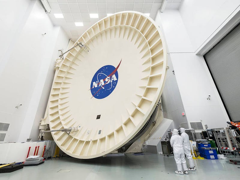 The chamber will simulate space-like conditions as a bit of a stress test for the sunflower-shaped Webb telescope, and keeping things shut tightly is a door that’s 40 feet in diameter and weighs 80,000 pounds. If everything performs well in the frigid, airless conditions therein, the Webb Telescope (which is the successor to the Hubble telescope) will stay on schedule for its October 2018 launch into space.
