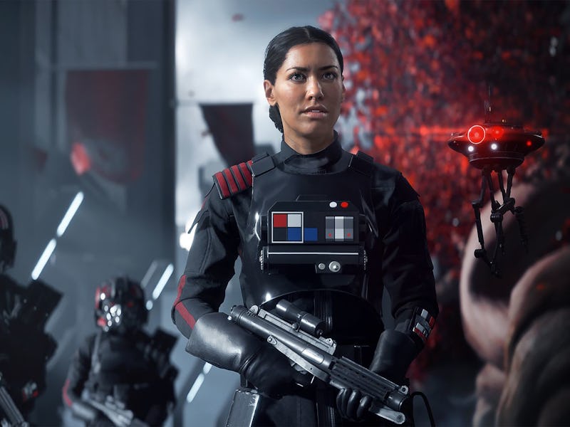 Actress Janina Gavankar tweeted the image out on Thursday. Gavankar lends her face and voice to Versio, Battlefront II’s protagonist and the central playable character for the story campaign. Versio and the rest of Inferno’s members look like the kind of top-tier soldiers that you wouldn’t want to mess with. After all, they’re elite TIE Fighter pilots and spec ops soldiers. Clad in all black, Versio is accompanied by Paul Blackthorne as Gideon Hask and TJ Ramini as who we can assume is Del Meeko.