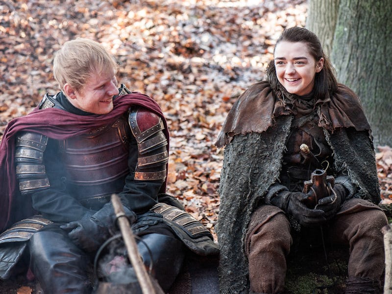 In “Dragonstone,” the first episode of Season 7, the famous singer plays a Lannister soldier. Arya Stark stumbles upon a group of soldiers huddled around a campfire after she kills all the Freys. She has a surprisingly civil encounter with them, involving shooting the shit about traveling far from home and singing a song. Here are the lyrics to the song Sheeran’s character sings: