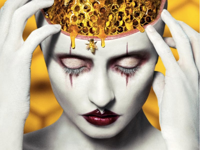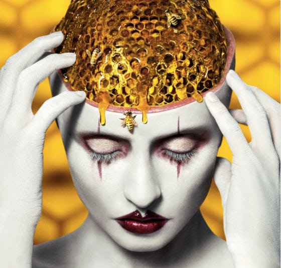 The anthology series American Horror Story is continuing its exploration of the macabre with season seven’s theme: cult. Clowns and bees inundate the recently released marketing materials, which show-runner Ryan Murphy drops as clues in the weeks leading up to the season premiere. The newly released poster for the show reveals a pale-faced clown whose cracked-open head contains a bee hive brain.