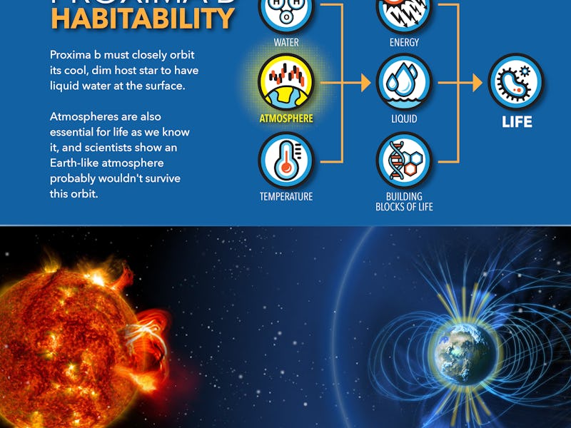 The key, then, is how much time. A similar process happens on Earth, but the sun will explode and engulf us before it totally sucks away our atmosphere. Proxima b is less lucky: NASA estimates that the atmospheric destruction on the exoplanet is happening around 10,000 times faster than it is on Earth.