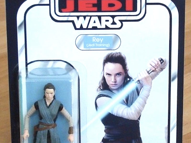In the past two weeks, several Star Wars: The Last Jedi action figures have popped up in eBay auctions, though most of them aren’t officially-licensed toys, but instead, figures created by fans. And, they’re going for a way more then you’d pay at Target. Want a “Jedi Training” version of Rey from The Last Jedi, done in the style of old-school Kenner action figures from the ‘80s? The starting bid on that creation is $49.99. Meanwhile, a different, custom version of Rey from The Last Jedi starts at 79.99.